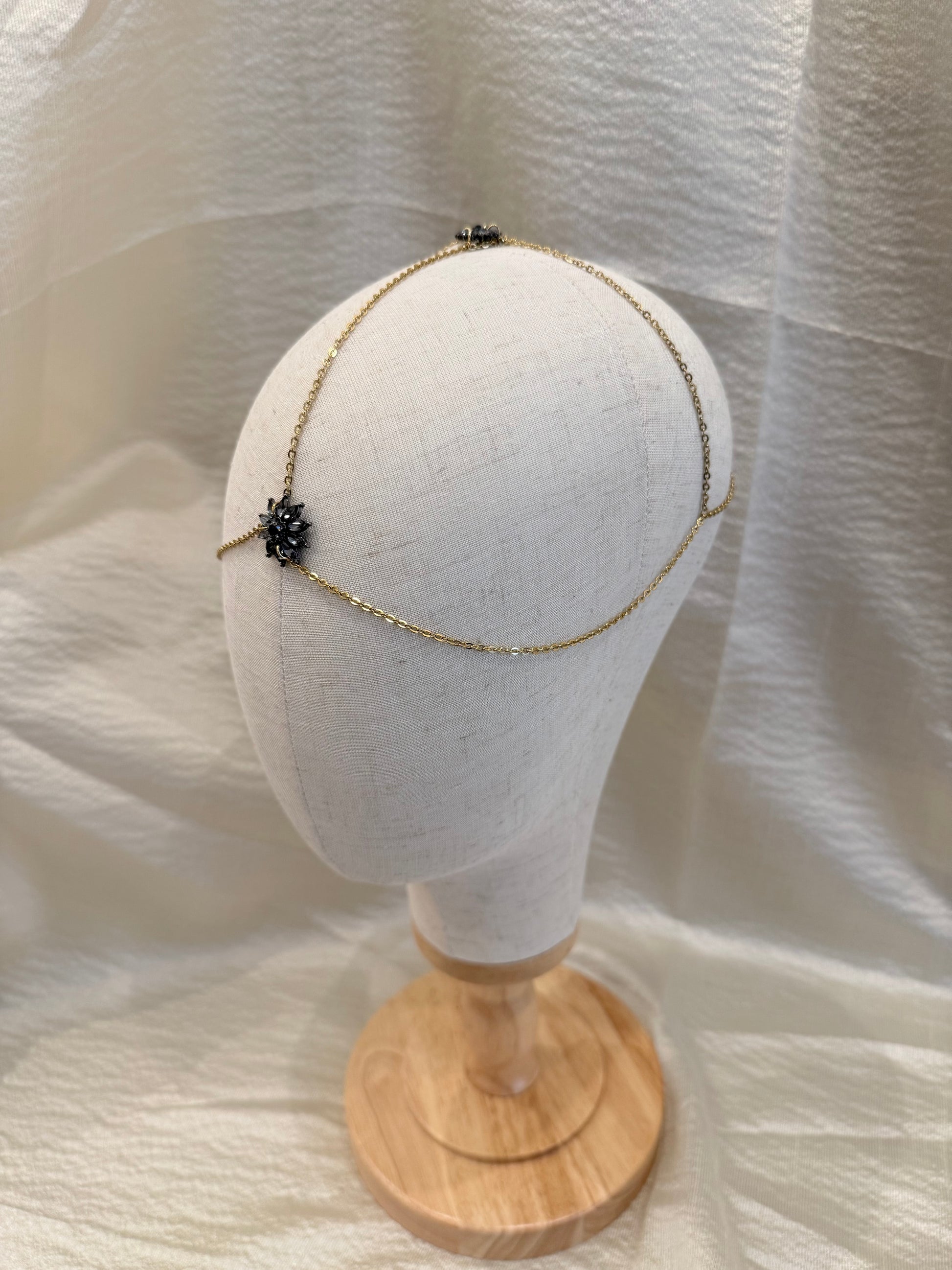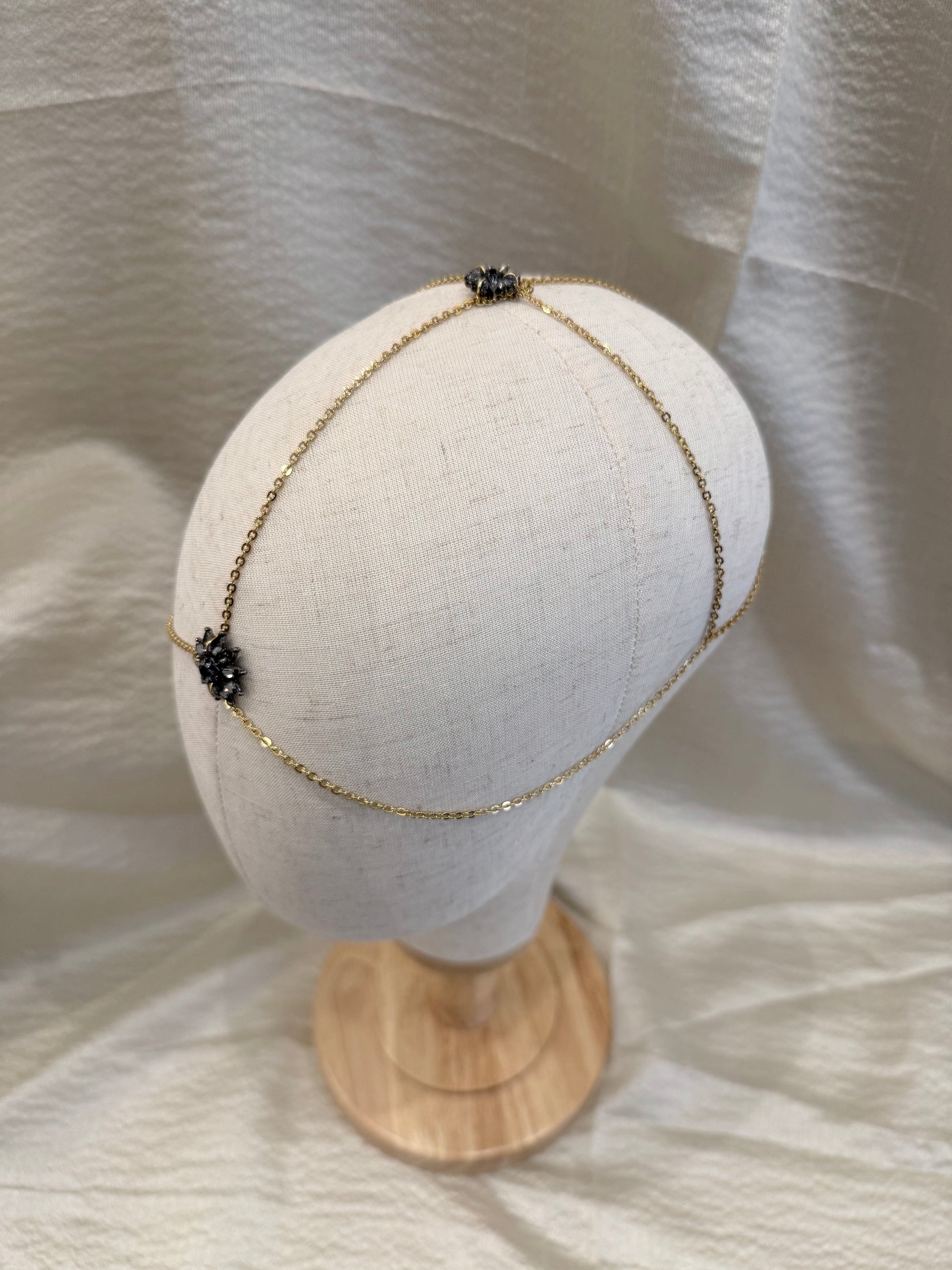 Casquete de cadena de acero con estrellas de cristal antracita