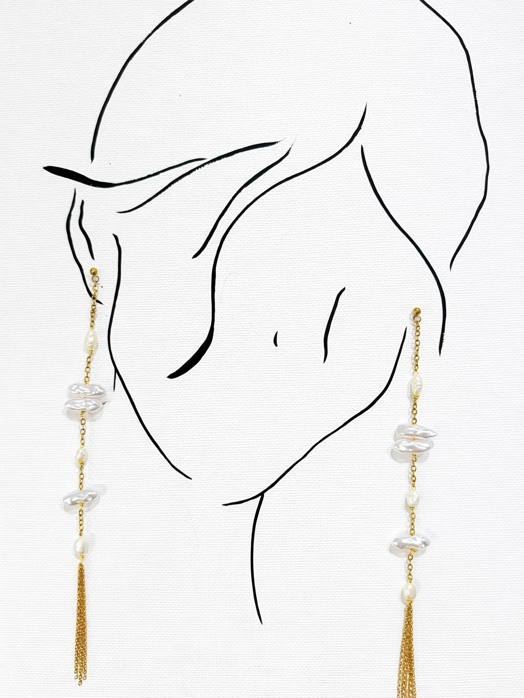 Pendientes largos de acero con perlas